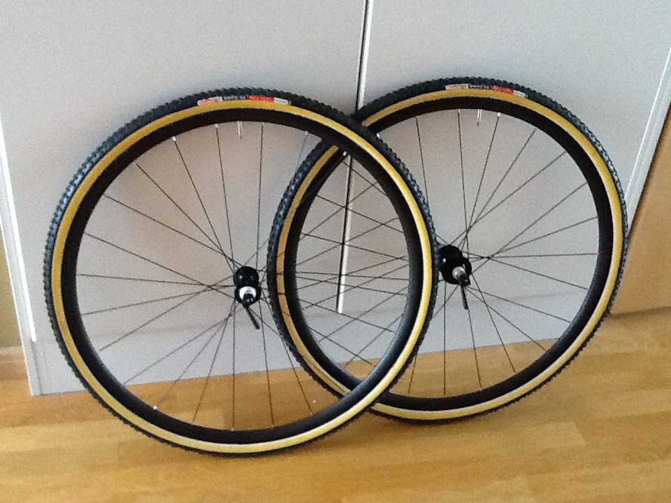 I morse fick jag (efter mycket om och men) på däcken på mina nybyggda cx-hjul Det kostade en blodutgjutning samt en vattenblåsa på några fingrar men nu MÅSTE däcken bara sitta fast.